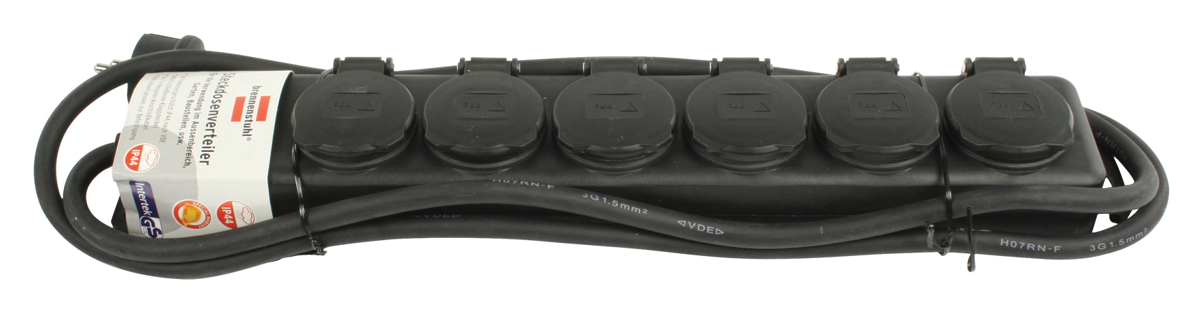 Brennenstuhl Steckdoseleiste mit Deckeln IP44 6x 2m sw