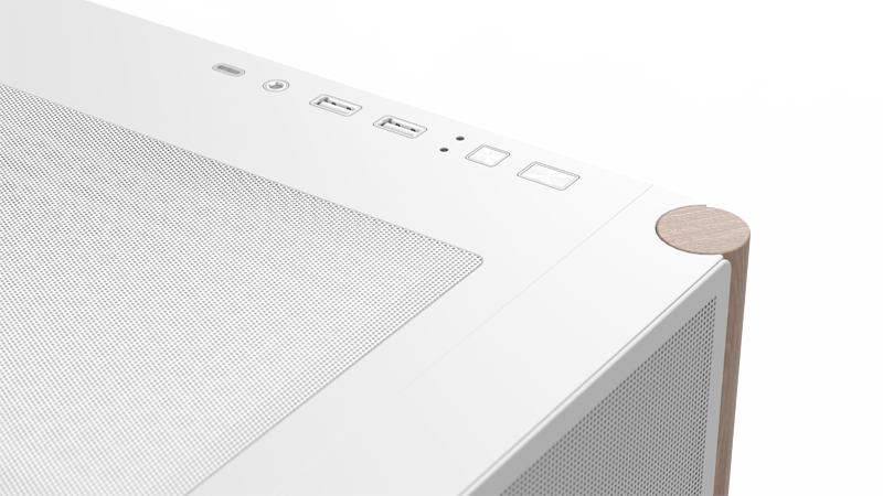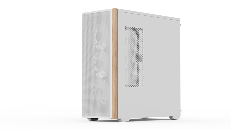Das AeroCool D501A besticht durch sein holzakzentuiertes Mesh-Frontpanel-Design und istdamit eine attraktive Wahl für einen trendigen Mid-Tower-PC. Es unterstützt Flüssigkeitskühler